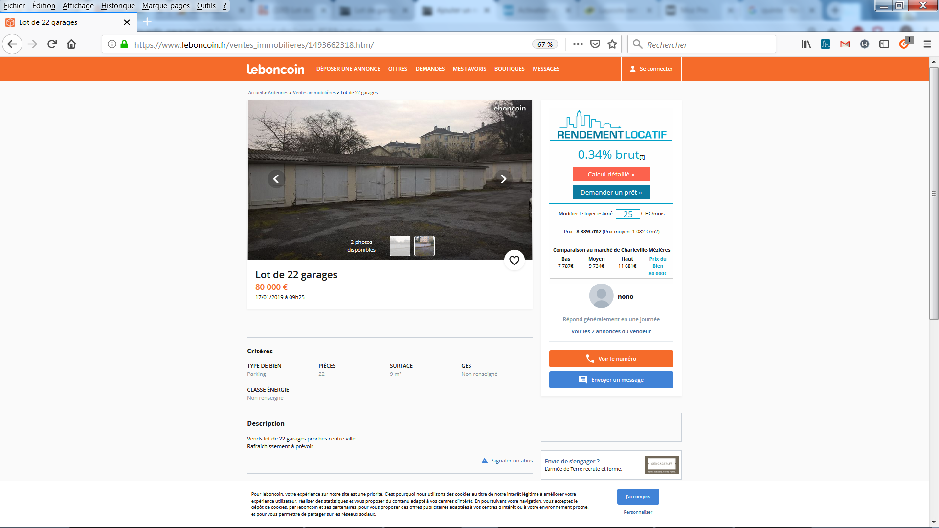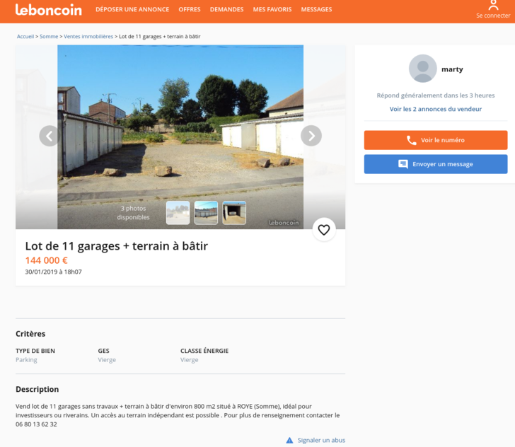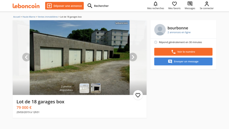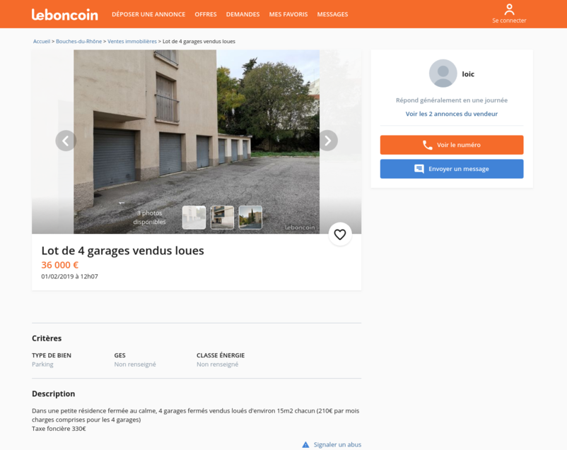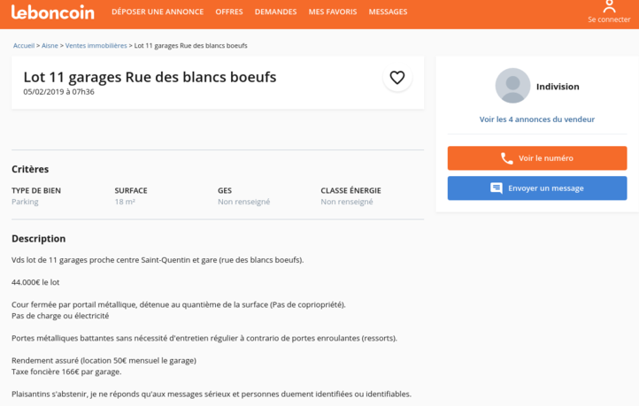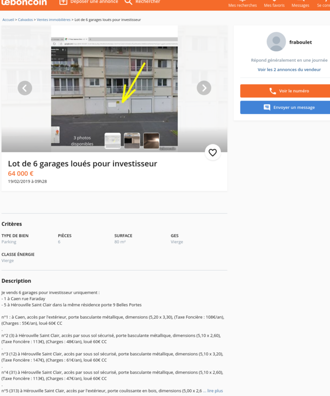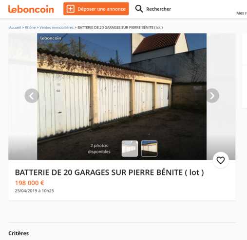 Date de l’annonce : 19 février 2019 Site : Leboncoin Type de vente : un lot de 6 garages loués […]
